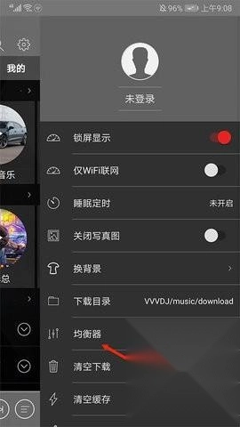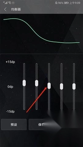4、进入均衡器界面后,拖动那个“椭圆”形状的按钮,即可完成调节操作。