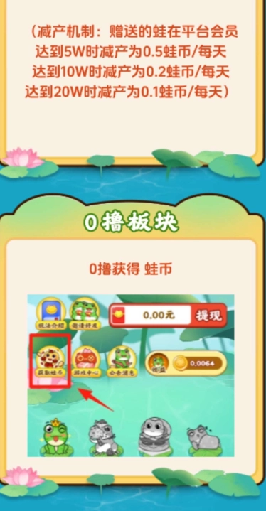 2、然后零撸获得蛙币