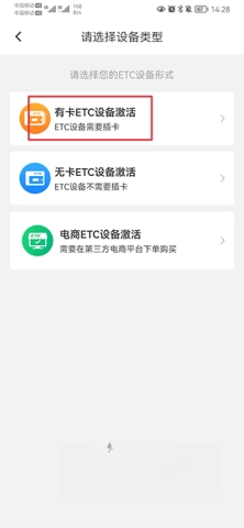 二、接着选择你要激活的设备类型,尤其是卡ETC设备