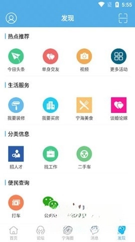 4、发现板块,为你奉上热点推荐、生活服务、分类信息,以及便民查询,让日常生活变得更便利;