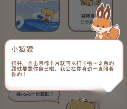2、看到一个小狐狸的提示界面,点击其中的“突破自己”选项;