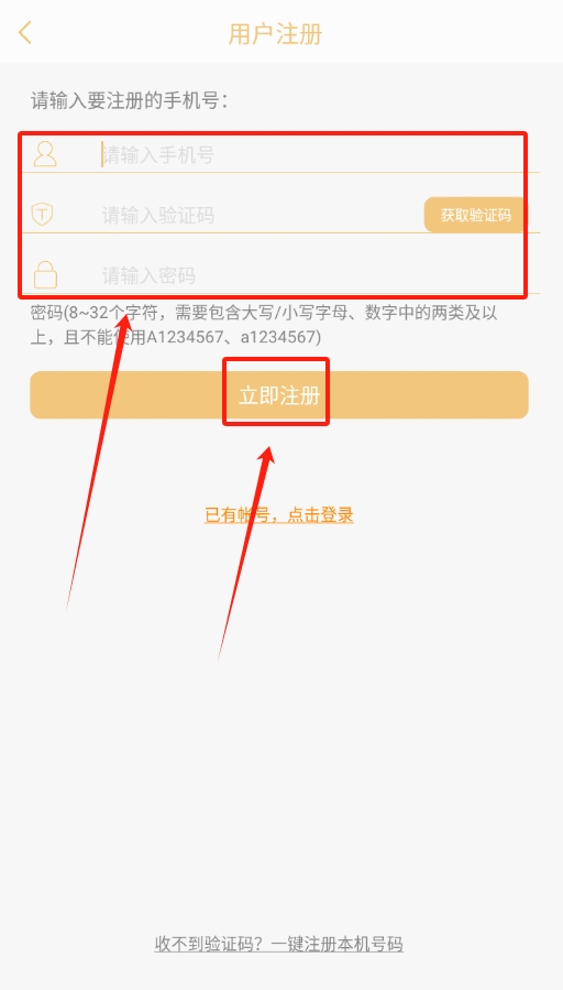 1、启动软件并进入登录界面,输入已注册的手机号码和密码,随后点击登录按钮,即可进入主页面。