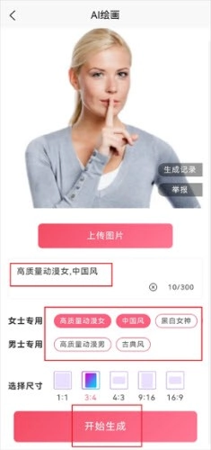 3、上传图片,挑选风格或自行输入,选定所需尺寸