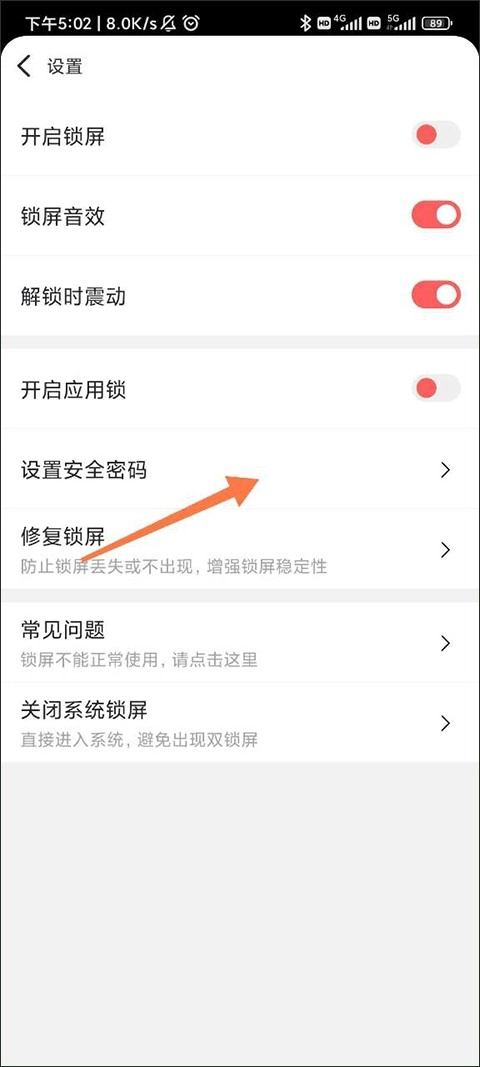2、进入设置列表后点击设置安全密码。