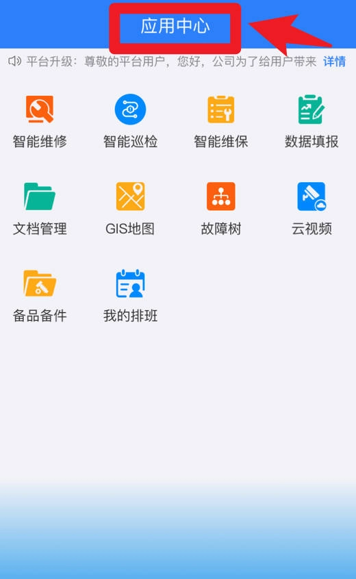 5、在应用中心提供智能维修、智能巡检、数据填报、云视频等功能模块,支持多样化设备管理与维护操作。