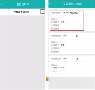 3、完成报销单创建后,点击页面右上角的“关联出差申请单”按钮;