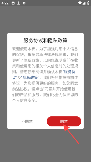 1、安装后,阅读并同意“服务协议和隐私政策”。