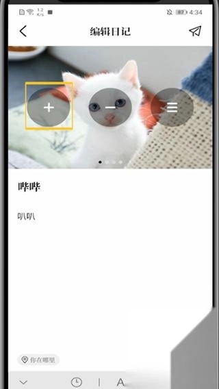 3、借助图片、语音和文字来叙述今日发生的故事,文字排版需简洁明了,同时标注清楚地点、记录好时间。