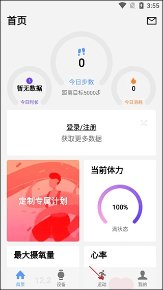1、打开宜准跑步应用,点击底部导航栏中的“运动”选项,进入运动界面;