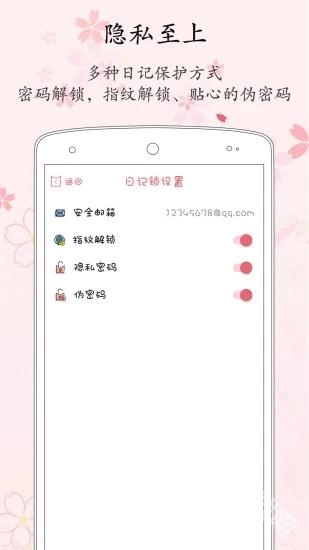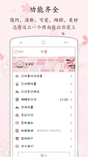 4、备份功能:日记内容支持云端备份,即便更换手机,也能随时检索到过往数据,让曾经的记忆得以完整留存。