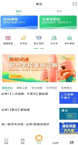 2、浏览首页呈现的各类最新资讯,可清晰知晓学校的动态与教学方案。