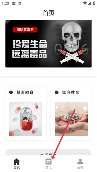1、在首页,点击底部【资讯】,进入资讯页面,可查看文章和法律法规等内容分类。