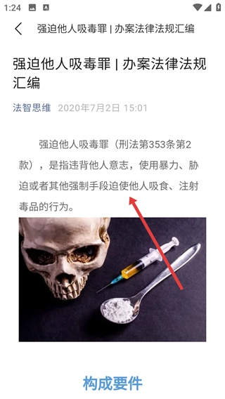 4、在文章详情页,可查看该法律法规的具体定义、构成要件等内容,完成信息查阅。