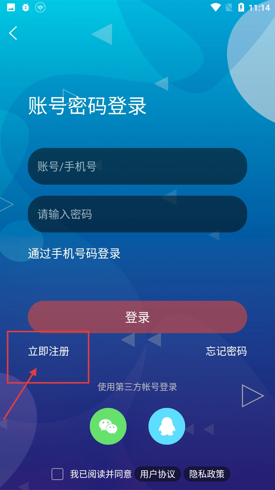 3、在账号密码登录页面,若要注册账号,可点击【立即注册】按钮,进入注册流程页面。