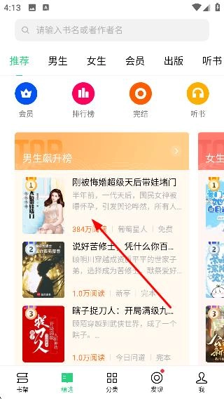 1、挑选想要阅读的目标小说,比如《刚被悔婚超级天后带娃堵门》,然后进入该小说的阅读界面。