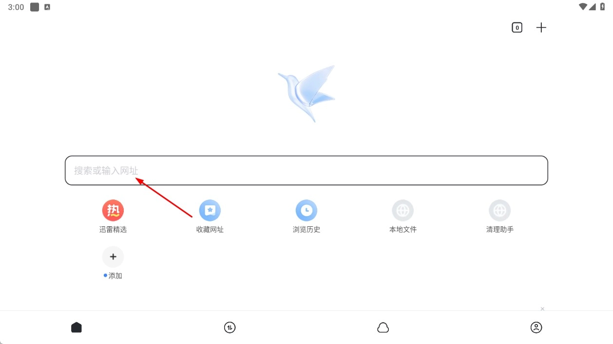 1、点击【搜索或输入网址-输入框】,输入关键词或网址进行搜索。
