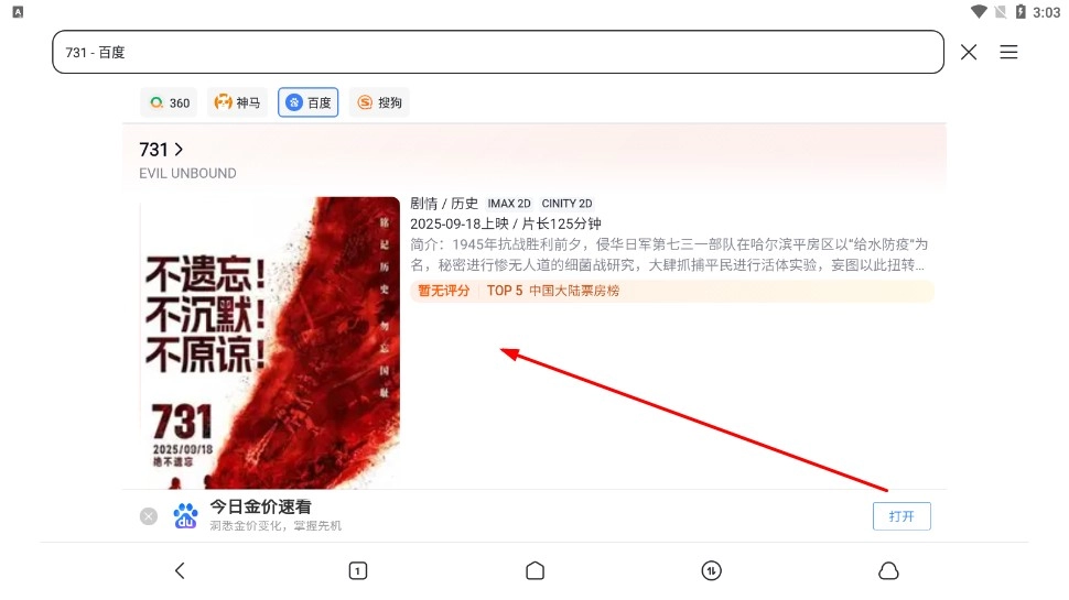 2、在搜索结果,找到例如【电影-731-影片卡片】并点击,查看影片详情。