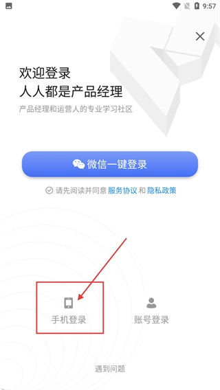 3、在登录界面点击【手机登录】,即可进入手机验证码登录页面。