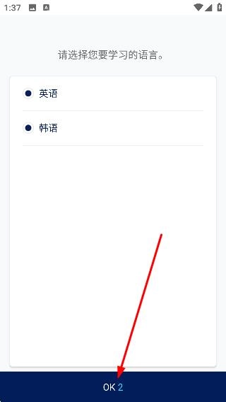1、在语言选择页面选择目标学习语言,如【韩语】。
