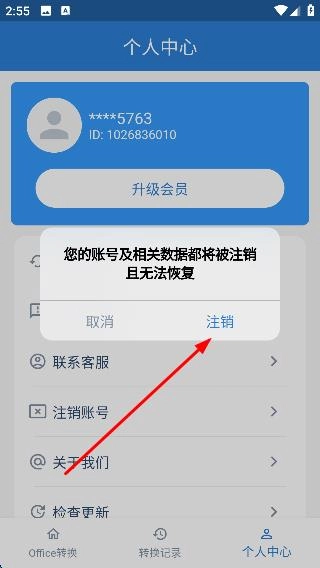 2、进入个人中心页面后,点击【注销账号】选项,系统会弹出注销确认的提示框。