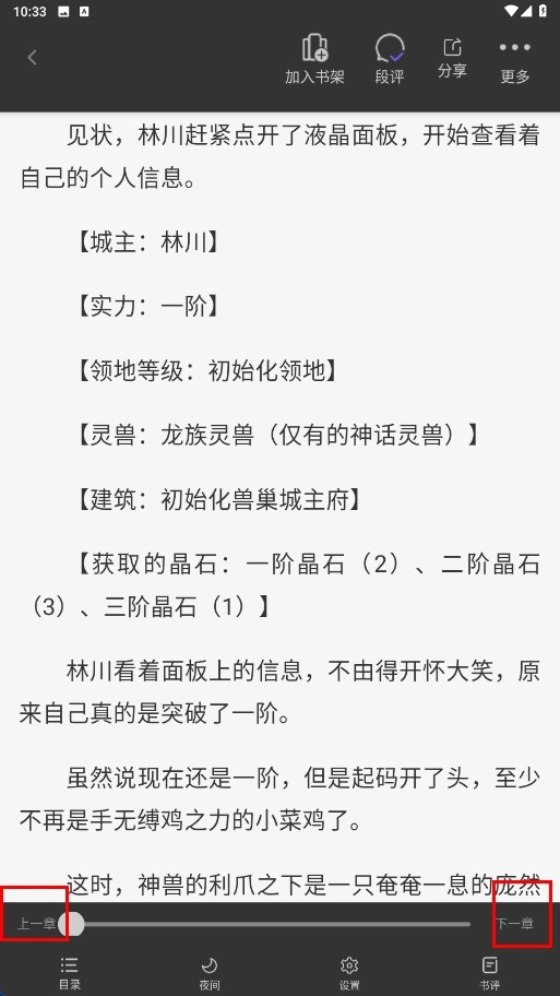 4、进入小说阅读页面后,既可以阅读小说内容,也能通过点击【上一章】或【下一章】功能按钮来切换章节。