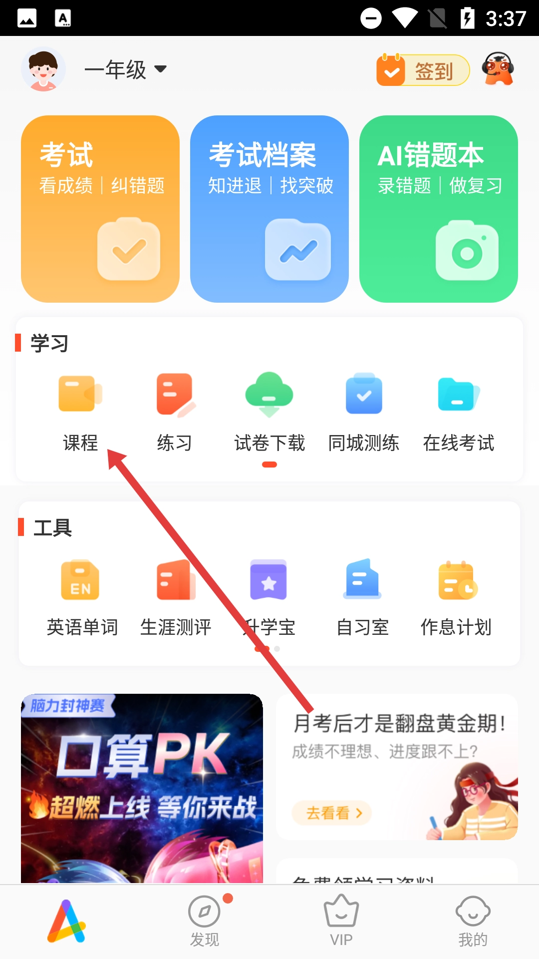1、在学习类App主界面,点击【课程】选项,进入课程页面。