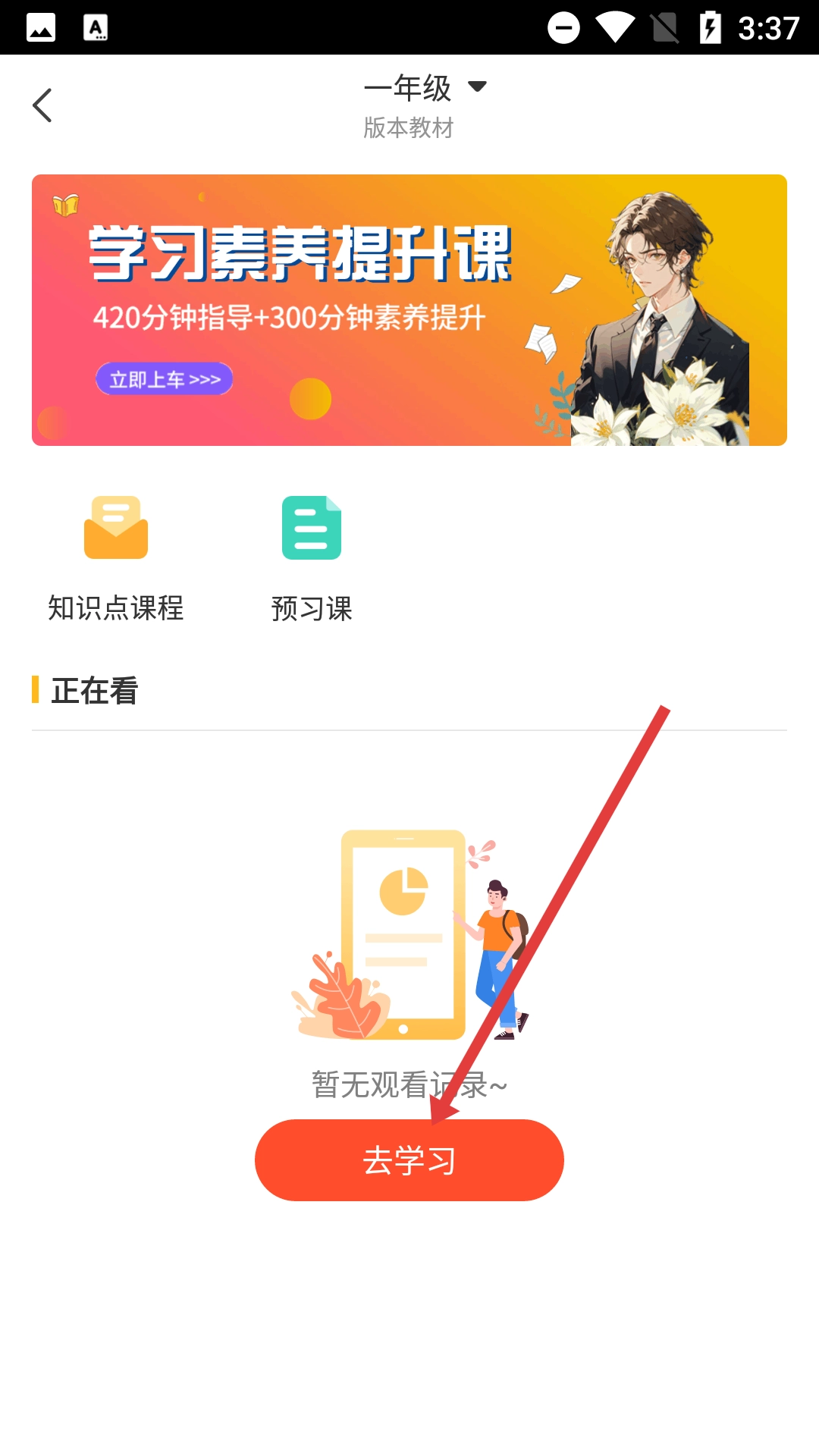 2、在课程页面,点击【去学习】按钮,进入知识点课程选择页面。