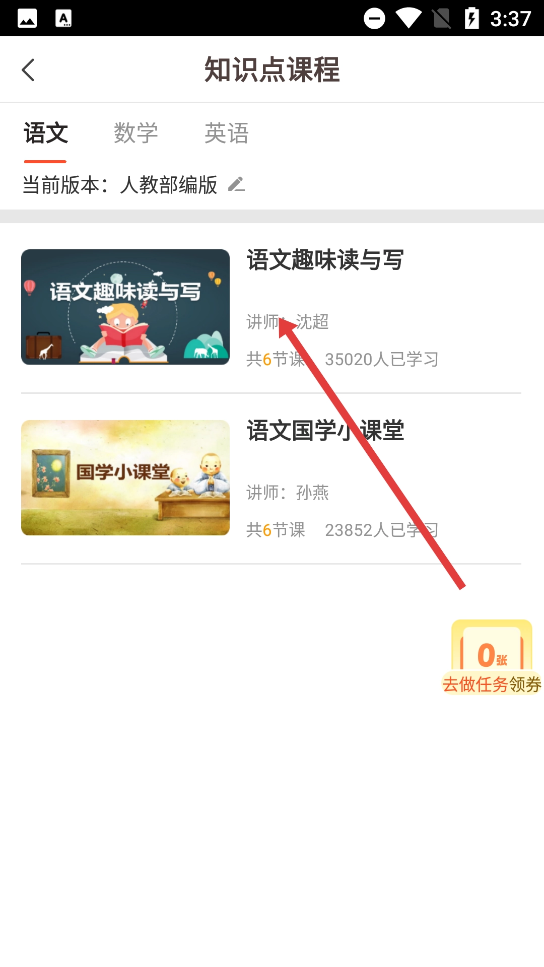 3、在知识点课程页面,选择目标课程,如【语文趣味读与写】,进入课程详情页面。
