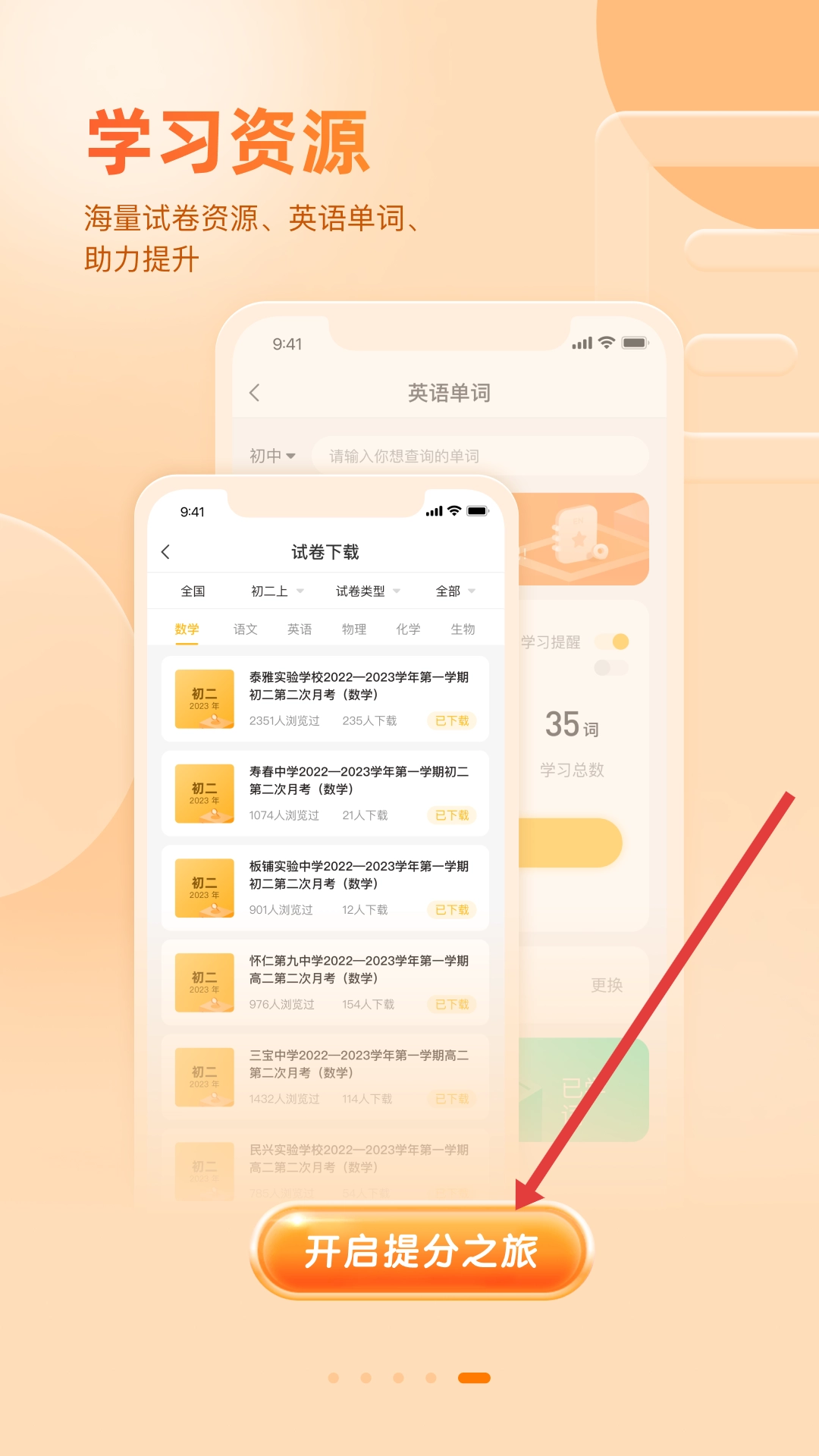 2、在学习资源推广界面,点击【开启提分之旅】按钮,即可进入登录页面。