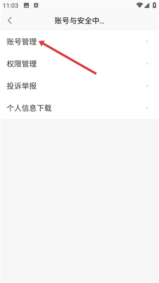 3、进入账号与安全中心页面后,点击【账号管理】选项,即可进入账号管理详情页。