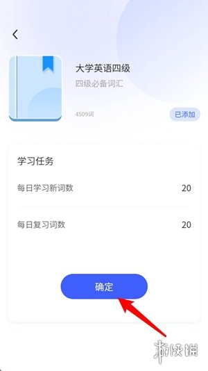 5用户可自行设定每日需学习的新单词数量与需要复习的单词数量,确认提交后,智能系统会依据设定自动生成与之匹配的每日学习任务安排。