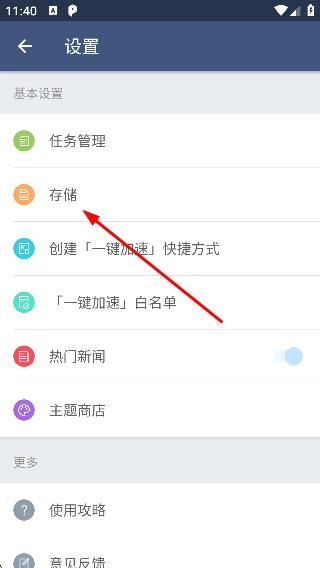 2、在设置页面点击【存储】,进入存储管理页面。