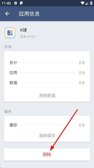 4、在应用信息页面点击【删除】,完成K球应用的删除操作。