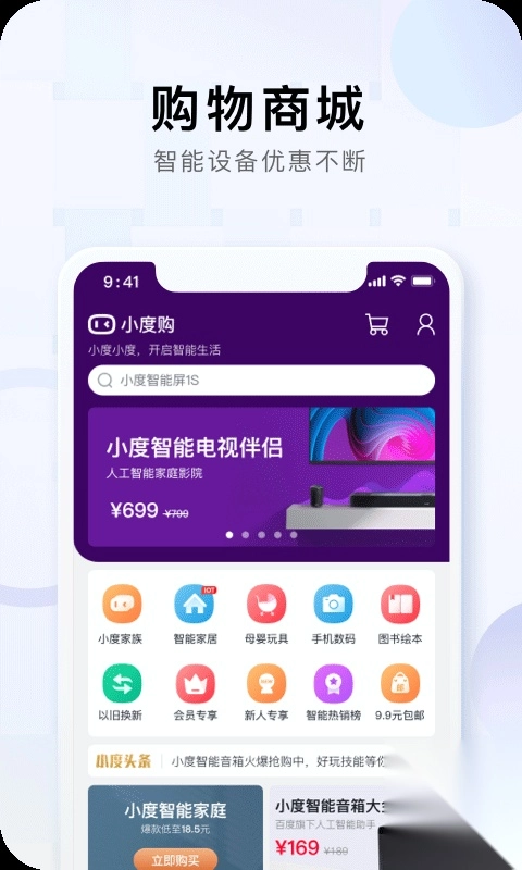 想即刻开启你的智能生活吗?打开小度最新版本,进入“商城”页面,更多智能产品正等待你带回家~