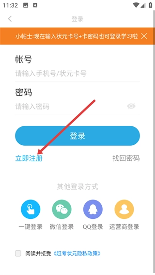 3、在登录界面,点击【立即注册】选项,进入账号注册页面,可开始填写注册信息。