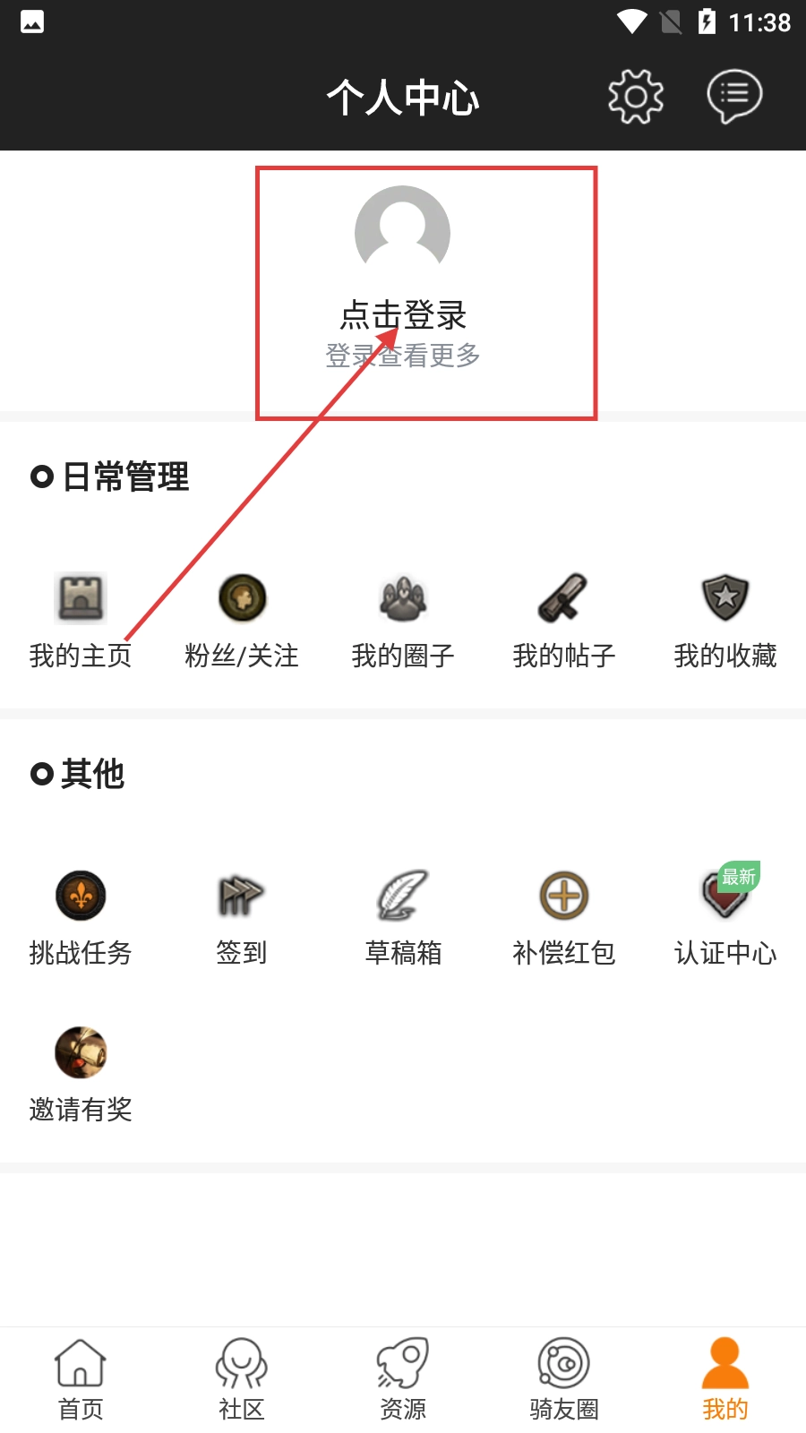 2、在个人中心界面,点击【点击登录】区域,可进入账号密码登录界面。