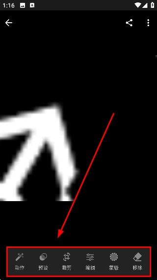 2、在图片编辑页面可选择【动作】【预设】【裁剪】等功能进行图片编辑操作。