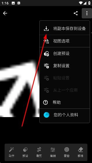 3、编辑完成后点击右上角更多按钮,选择【将副本保存到设备】,保存编辑后的图片副本。