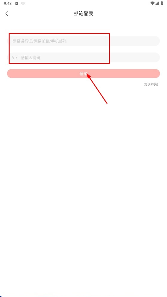 4、进入邮箱登录页面后,依次输入邮箱账号与密码,随后点击【登录】功能按钮,即可完成登录操作。