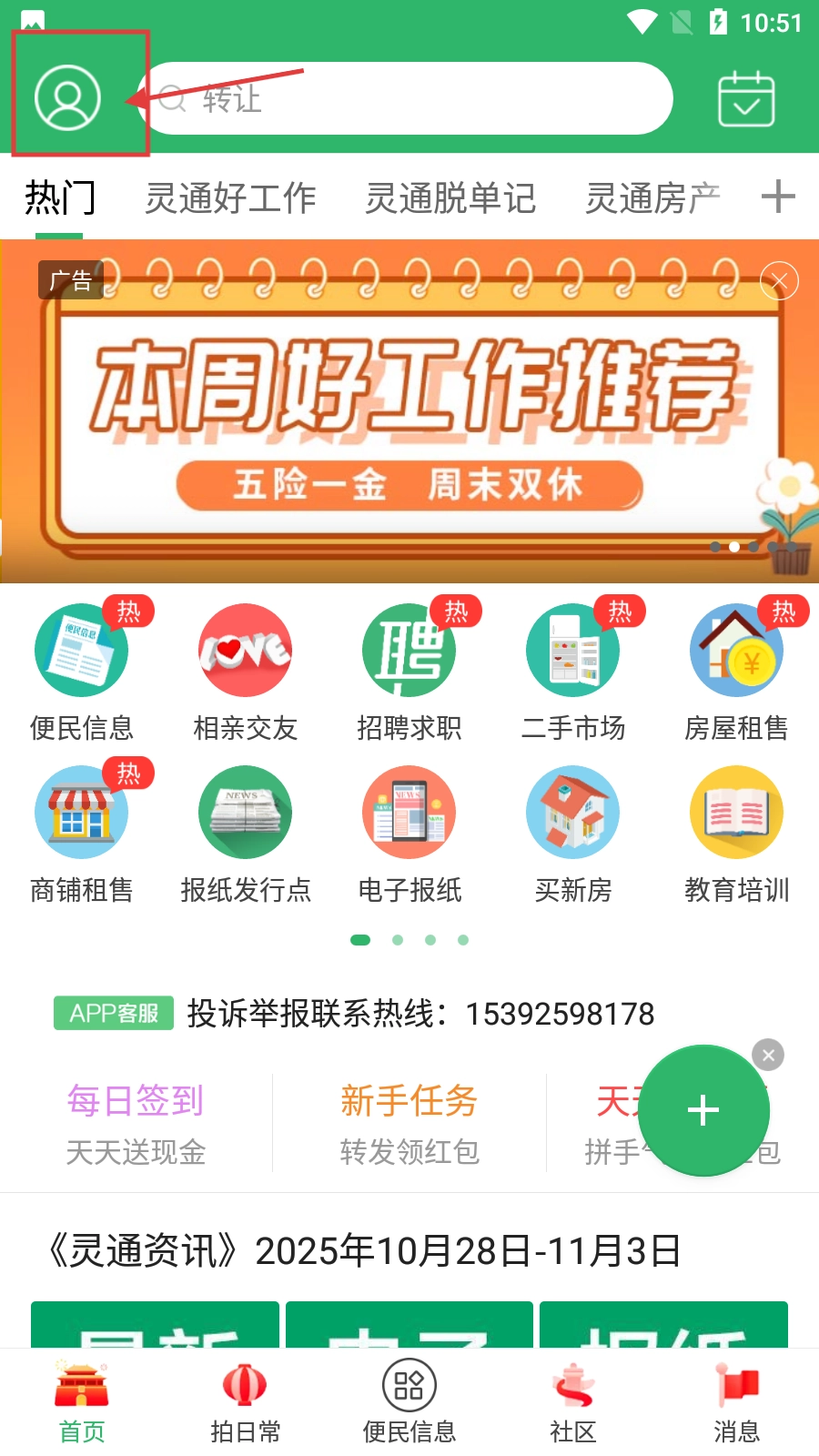 进入灵通资讯后,点击左上角的个人中心图标,即可进入“我”的页面。