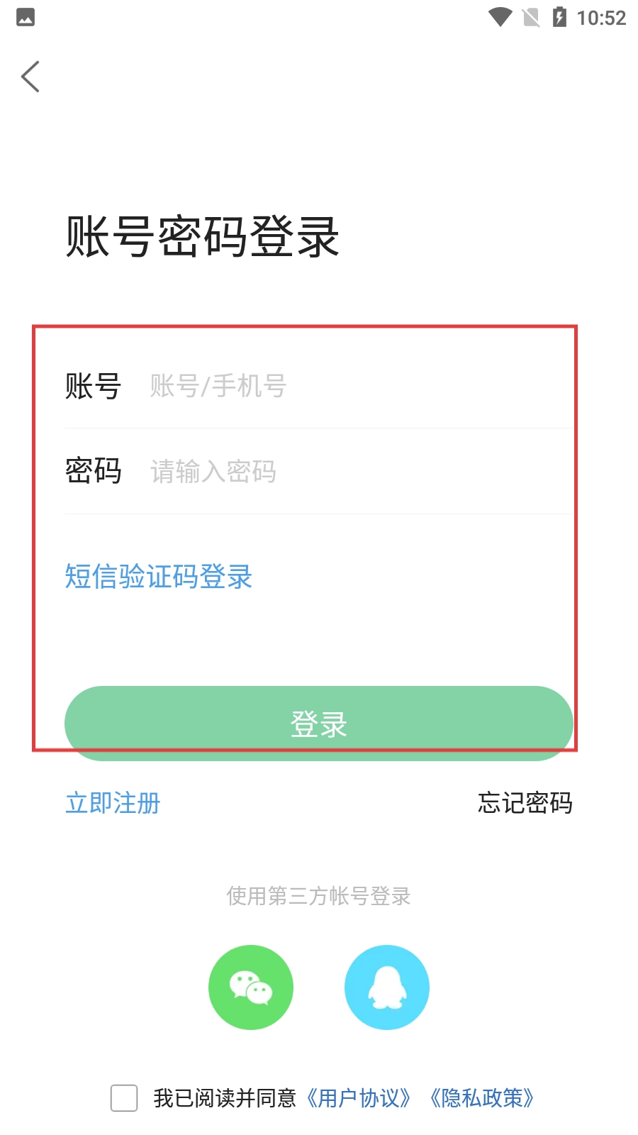 4、进入账号密码登录界面后,填写【账号/手机号】与【密码】,即可完成账号登录操作。