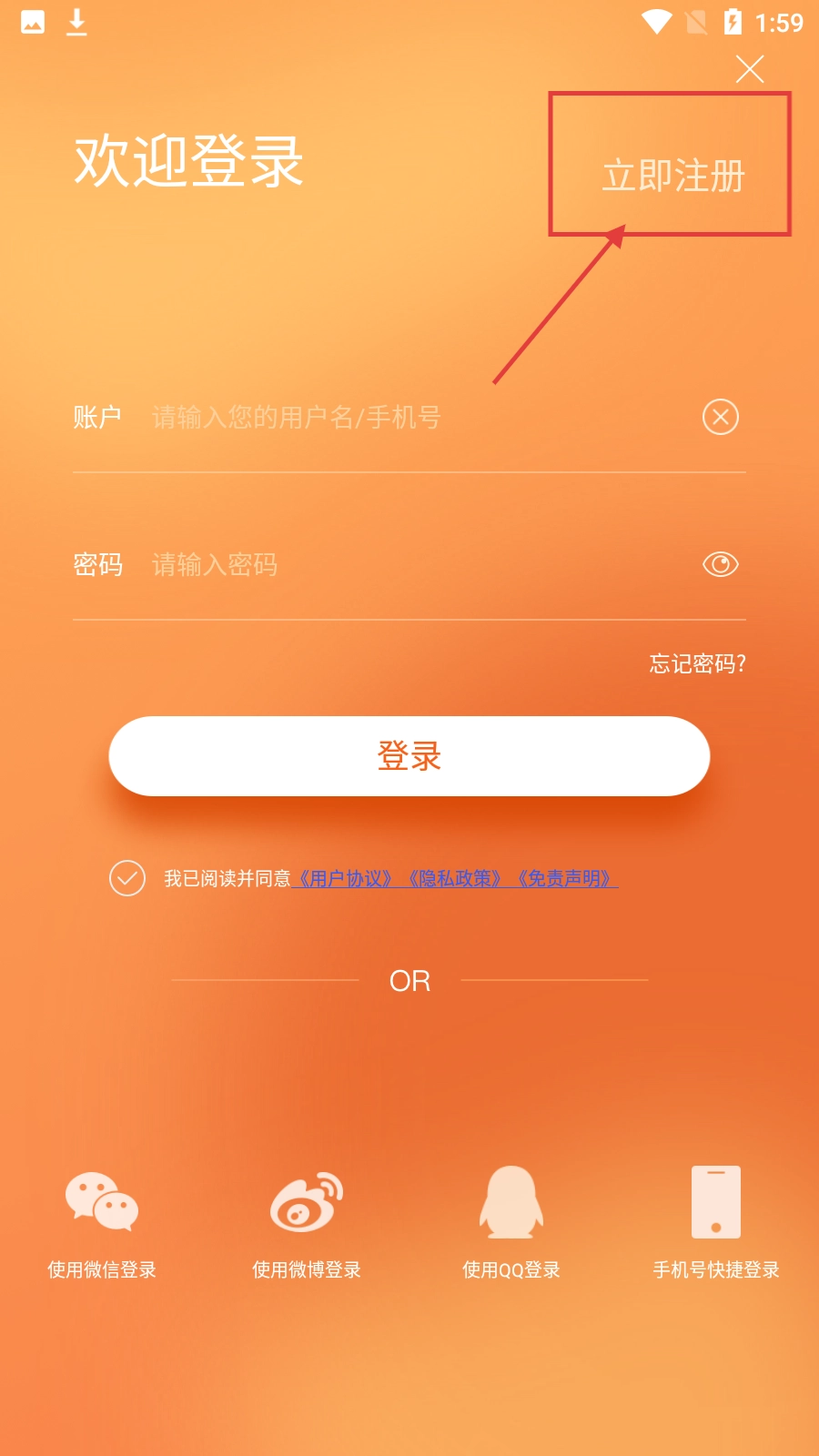 3、在登录界面,要是还没有账号,点击【立即注册】按钮,就能进入注册页面。
