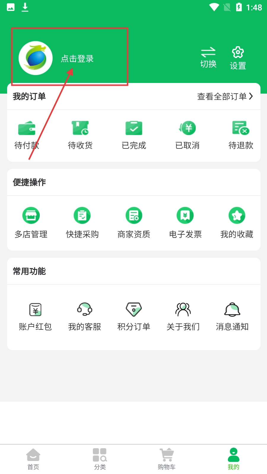 2、进入个人中心页面后,找到【点击登录】区域并点击,即可进入登录界面。