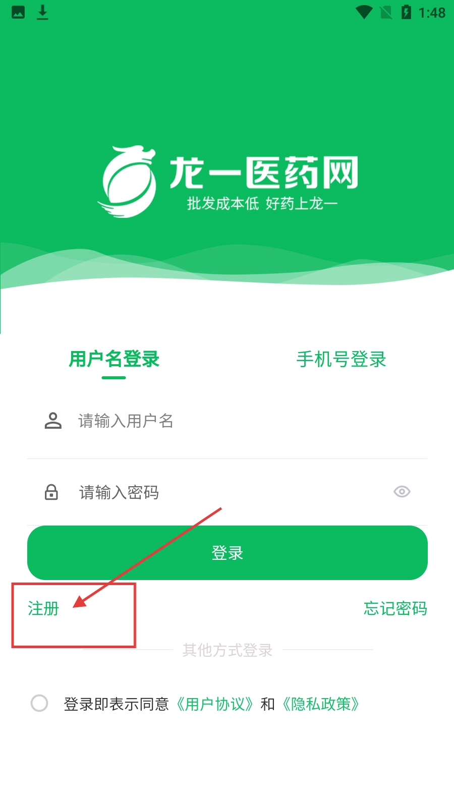3、在登录界面,若您还没有账号,可点击【注册】按钮,进入注册页面完成账号注册。