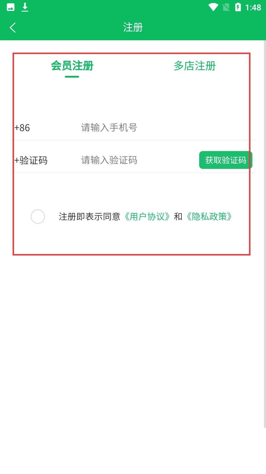 4、点击【会员注册】选项,填写手机号,获取验证码并输入,勾选同意相关协议后即可完成注册流程。