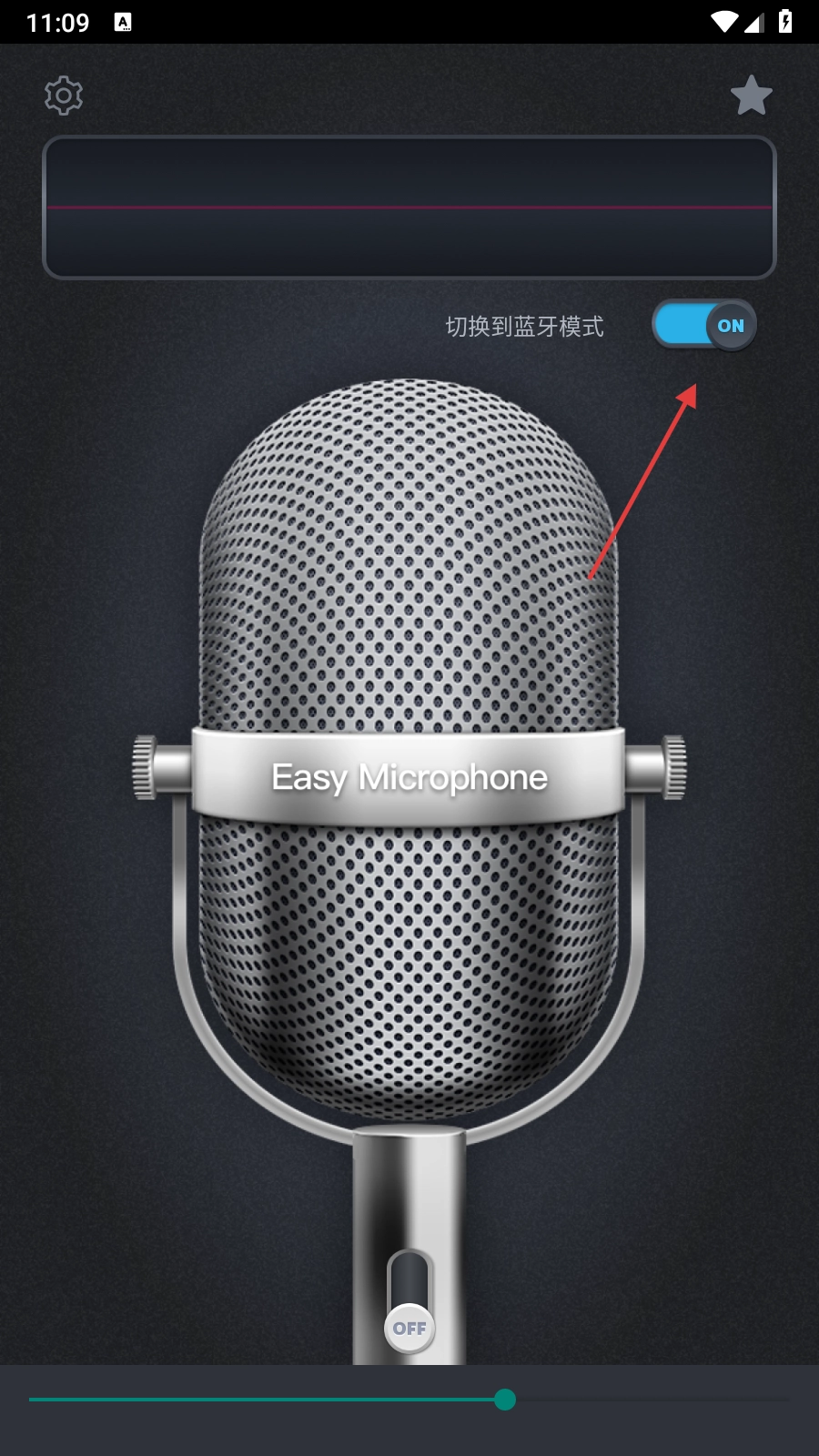 进入软件主界面后,能看到“切换到蓝牙模式”的开关,其初始状态为【OFF】。