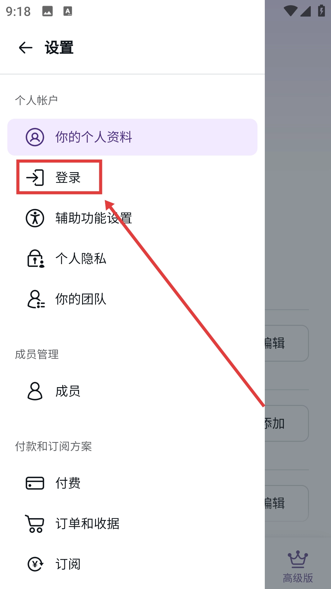 3、进入设置页面后,点击【登录】选项,即可跳转至登录相关的设置页面。