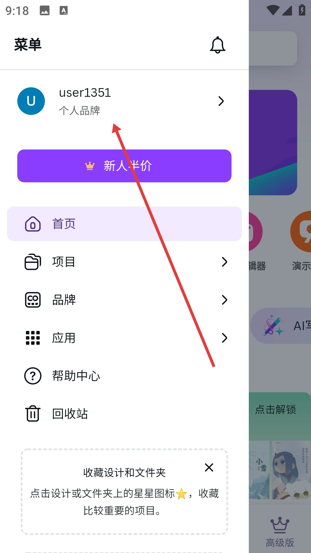 1、点击菜单中的用户区域,进入账户页面。