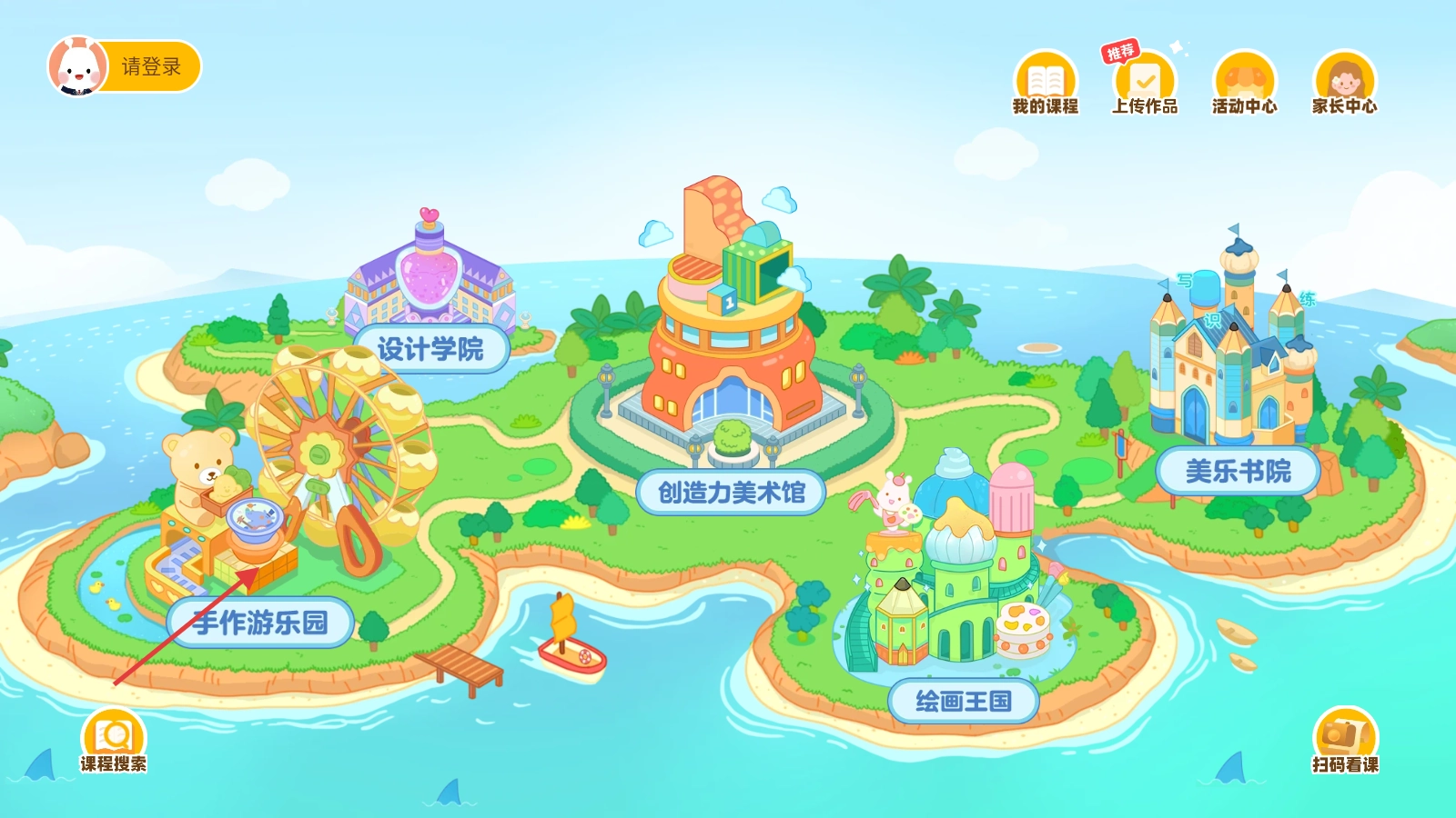 1、进入软件后,可看到【手作游乐园】【创造力美术馆】等板块,点击对应板块可进入相关功能区域。