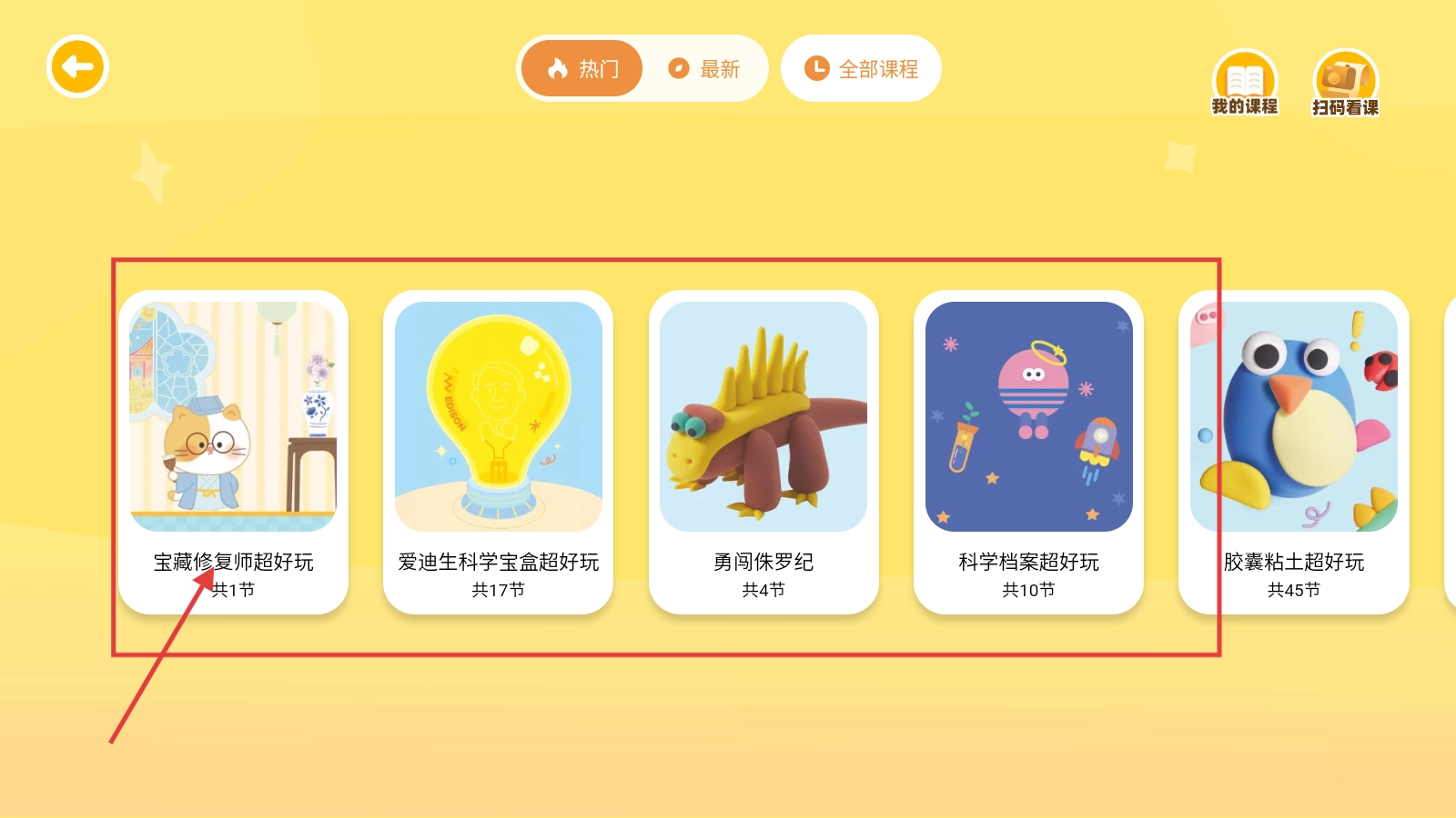 2、在课程列表中,选择自己喜欢的,比如找到【宝藏修复师超好玩】课程,点击即可进入该课程界面。